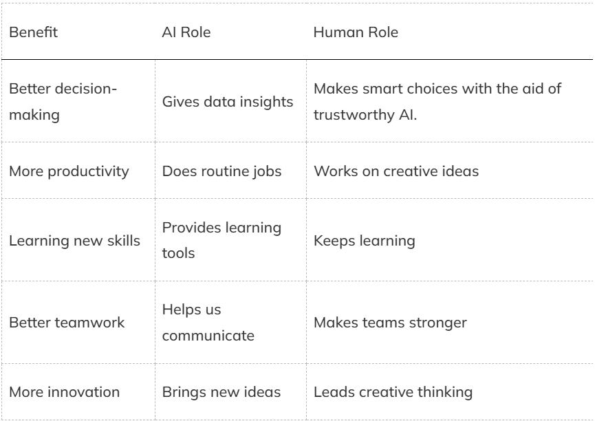 Adopting a people-first AI approach ensures that human skills and viewpoints are key to an organization's success. This method puts people first, highlighting the importance of growing our workforce. By letting employees work with AI, we create an environment where technology supports human abilities. It's key to mix automation with efforts that create new jobs and improve skills.