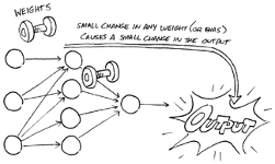 The good news is that during the machine learning process, the artificial neural network does most of the heavy lifting. It turns the dials up and down to make the necessary adjustments. You just need to make sure that you give it a good starting point by assigning random weights and that you continue to feed it relevant input to enable it to make further adjustments.
