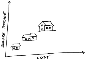Suppose you have the following input-output pairs showing a direct correlation between the size of houses and their prices: