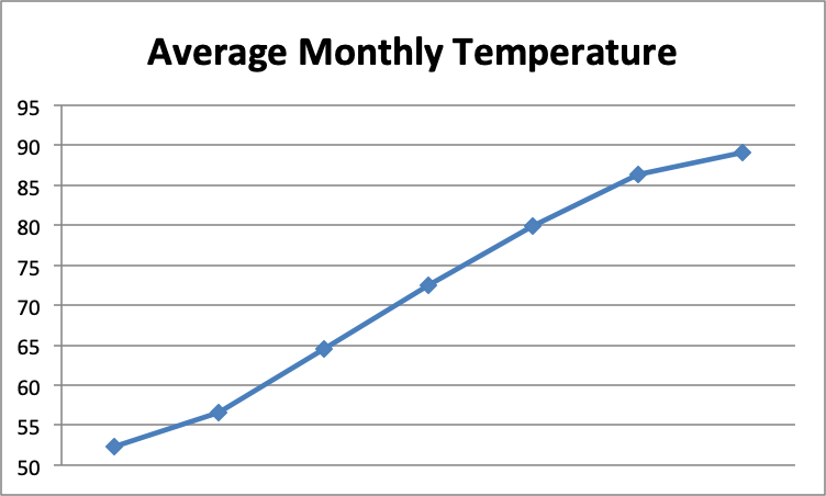 Your initial reaction might be that temperatures are rising precipitously in Atlanta and something must be done to reverse this dangerous trend. What's missing from this graph? The months along the horizontal axis: January through July. Of course monthly temperatures are going to rise dramatically over the spring and summer months!