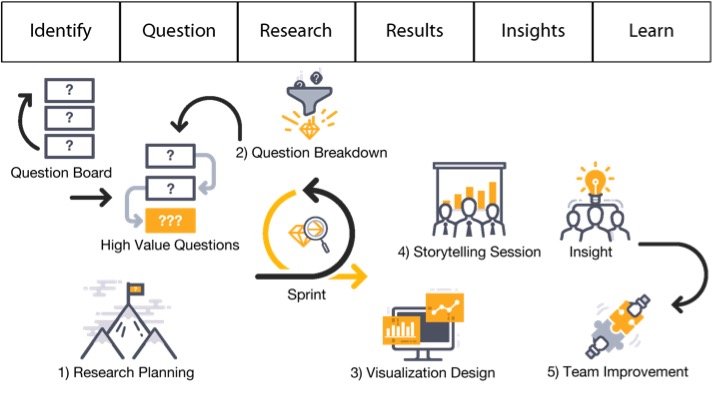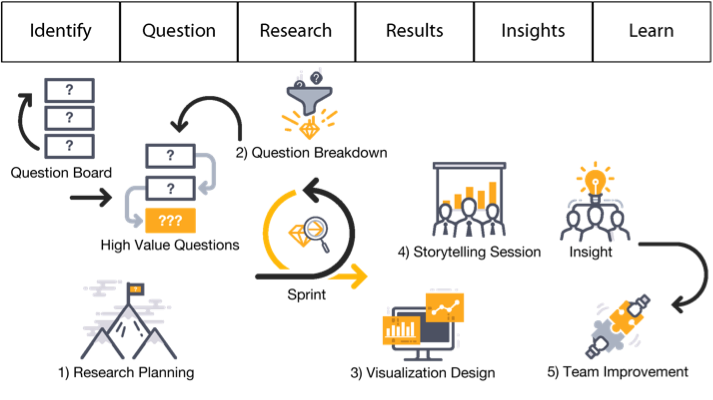 - Question breakdown: During each sprint, the data science team should have at least two one-hour question breakdown meetings, during which they ask questions, evaluate and prioritize questions for the next sprint, and clear uninteresting questions from the board.