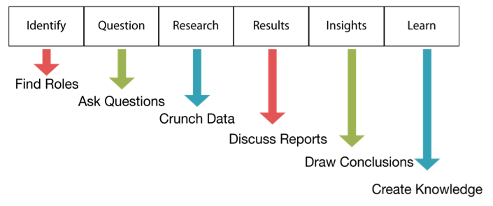 At first glance, DSLC appears to be a linear process, starting with identification and ending with learning, but the process is actually cyclical. Learning leads to more questions that return the team to the beginning of the process. In addition, mini-cycles often form within the DSLC as research and analysis results prompt questions that require additional research and analysis to answer.